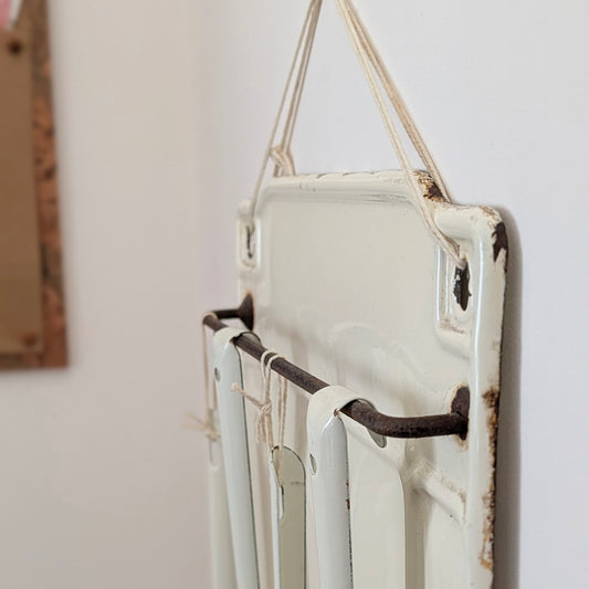 French Enamel Drip Rack and Utensils in Cream