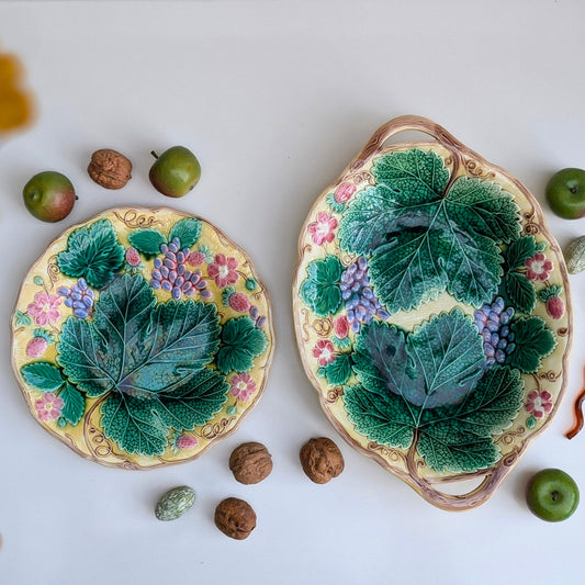 Antique Wedgwood Majolica Strawberry and Vine Plate Set
