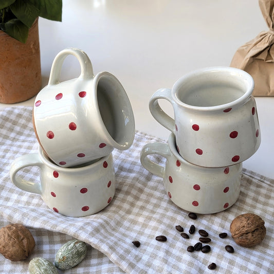 Hand Thrown Red Spot Ceramic Mugs (sold in pairs)