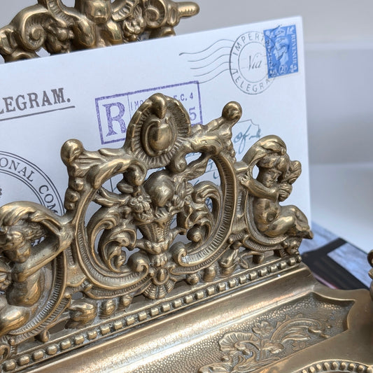 Stunning Large Brass Cherub Inkwell Letter Holder