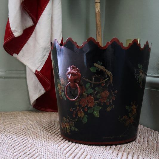 Italian Painted Toleware Lion Cachepot/Paper Bin