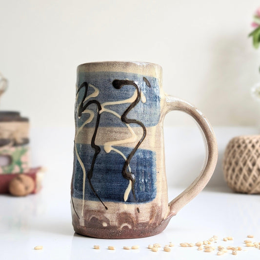 Blue and Cream Slipware Vase/Mug