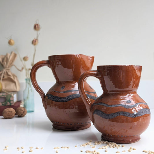 Slipware Terracotta and Black Jug (Medium)