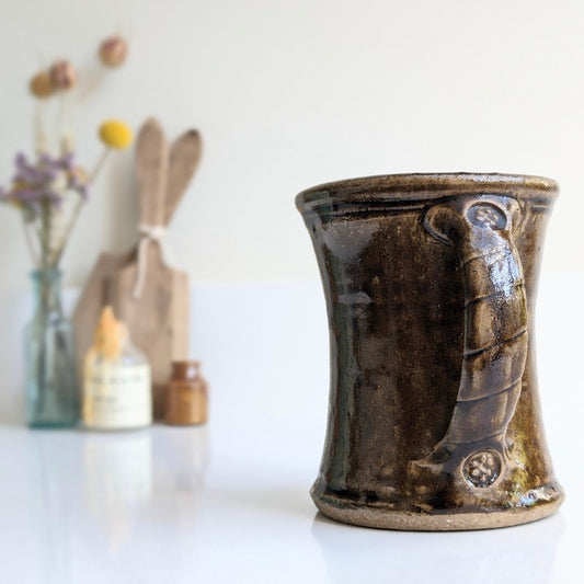 Brown Studio Pottery Jug with Decorative Handle