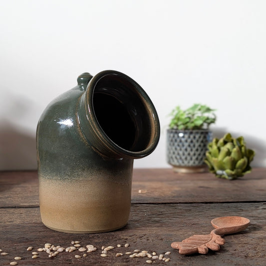 Studio Pottery Green Ombre Salt Pig