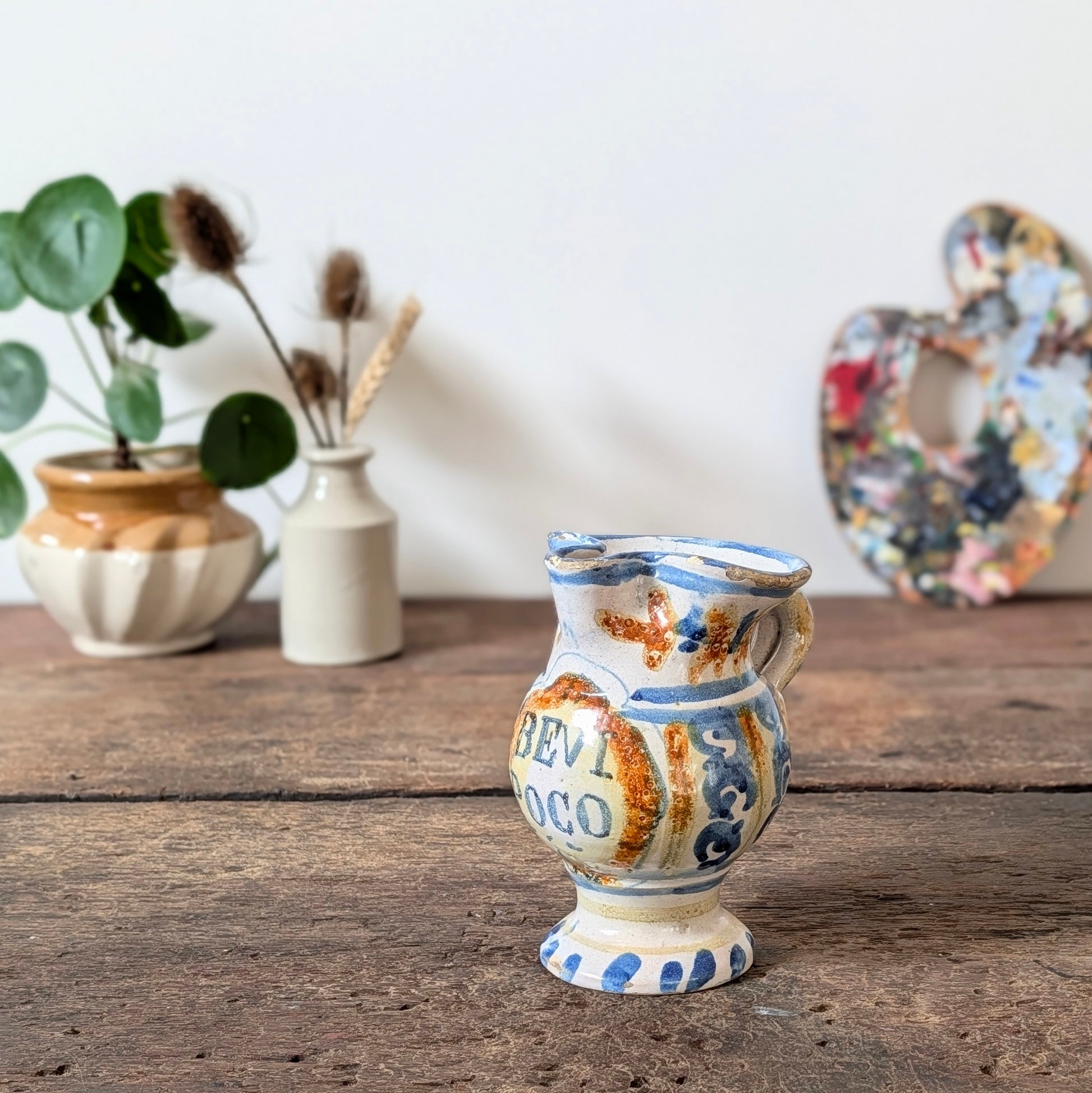 A charming little jug with the phrase “Bevi Poco” – drink a little – adding a playful, slightly mischievous touch. Simple, characterful, and the sort of piece that feels straight out of an Italian kitchen. Lovely for milk, small flowers, or just sitting on a shelf doing its thing.