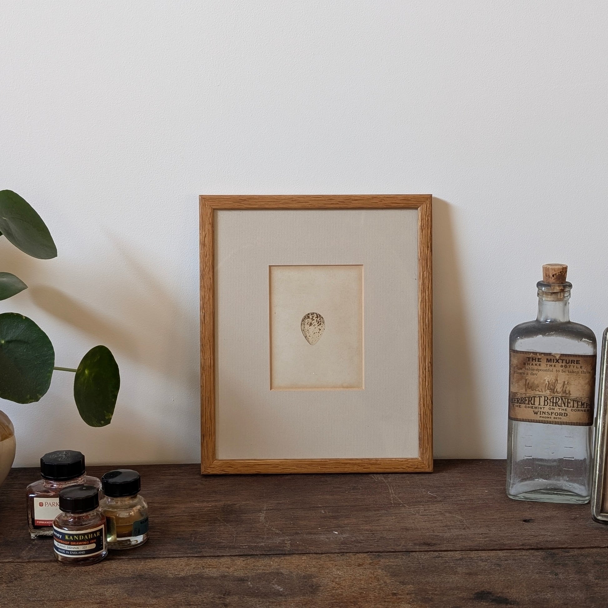 This wonderful printed and hand coloured egg is really quite special. I imagine these originally came from a book plate. Tastefully framed and ready to hang.
