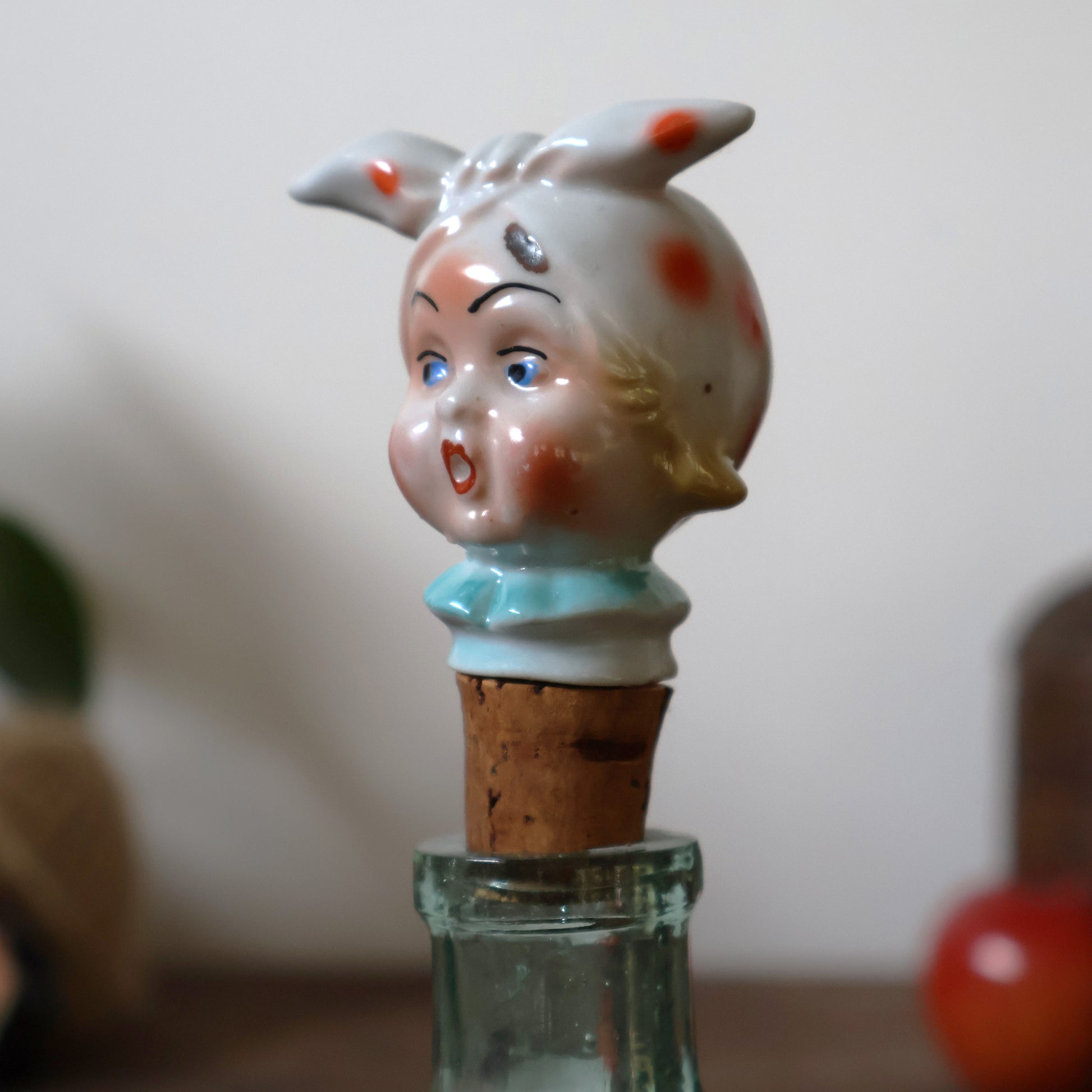 These vintage figural hand-painted porcelain bottle stoppers are full of charm and personality. Made in Germany, each ceramic topper features a unique design - perfect for adding a touch of whimsy and elegance to your favourite bottles or bar display.