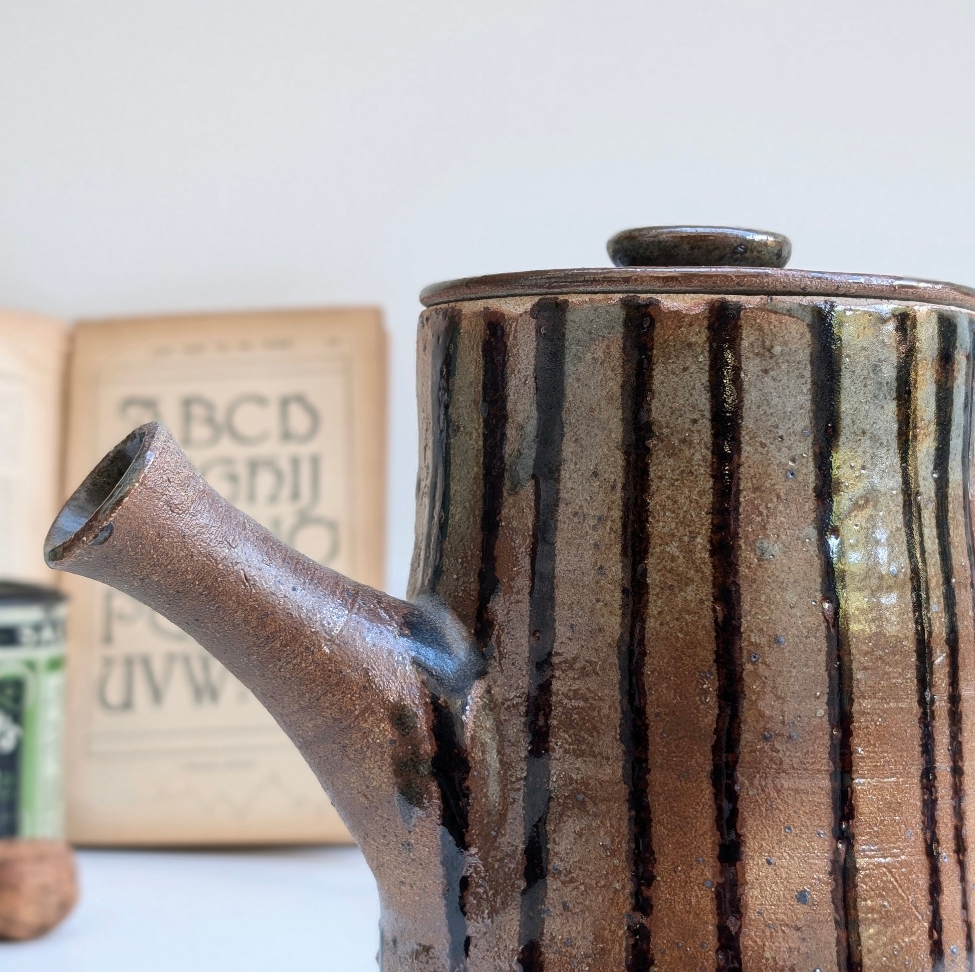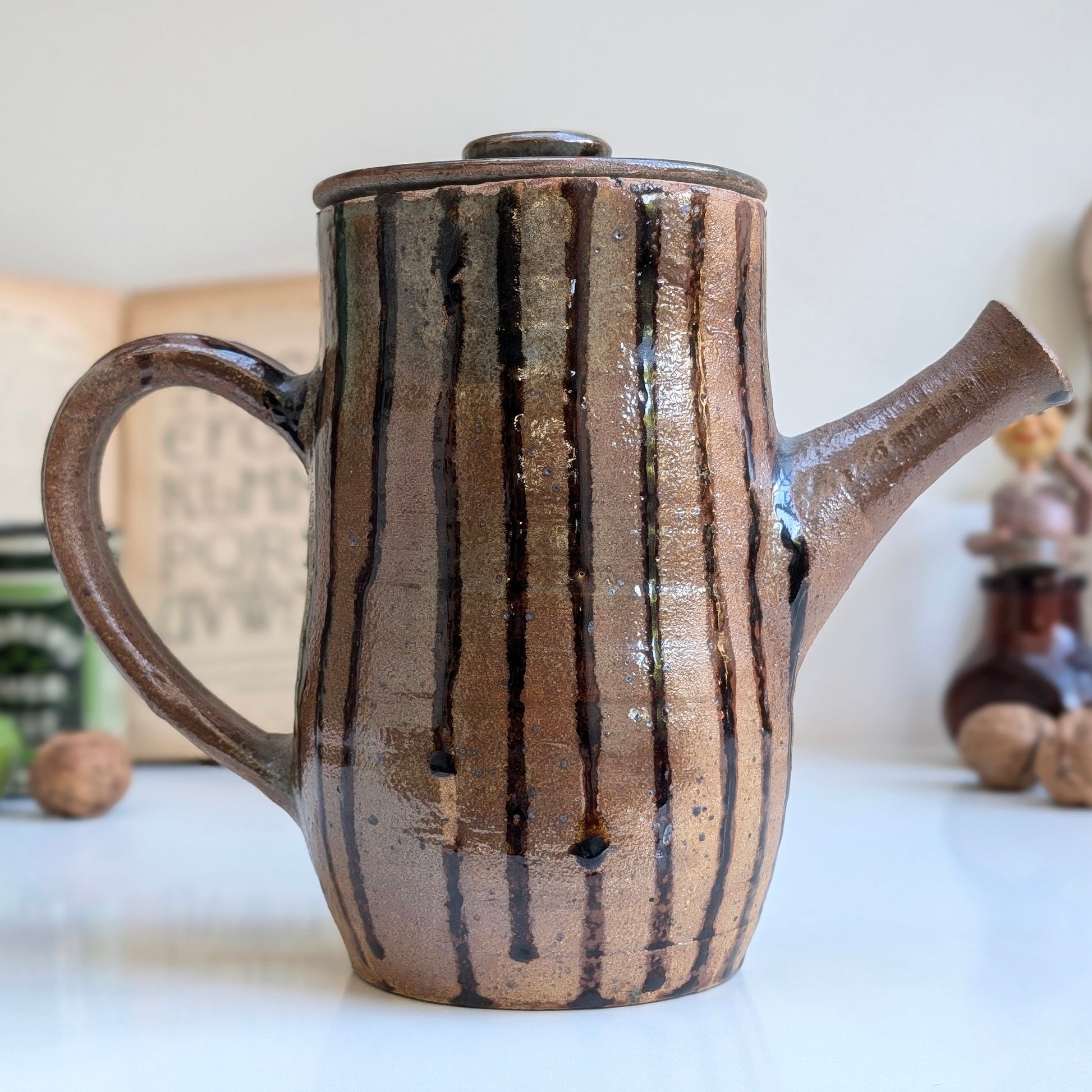 This hand-thrown studio pottery coffee pot features bold, earthy stripes and a unique artisan feel. Both functional and decorative, it’s perfect for serving or as a standout piece in your collection.