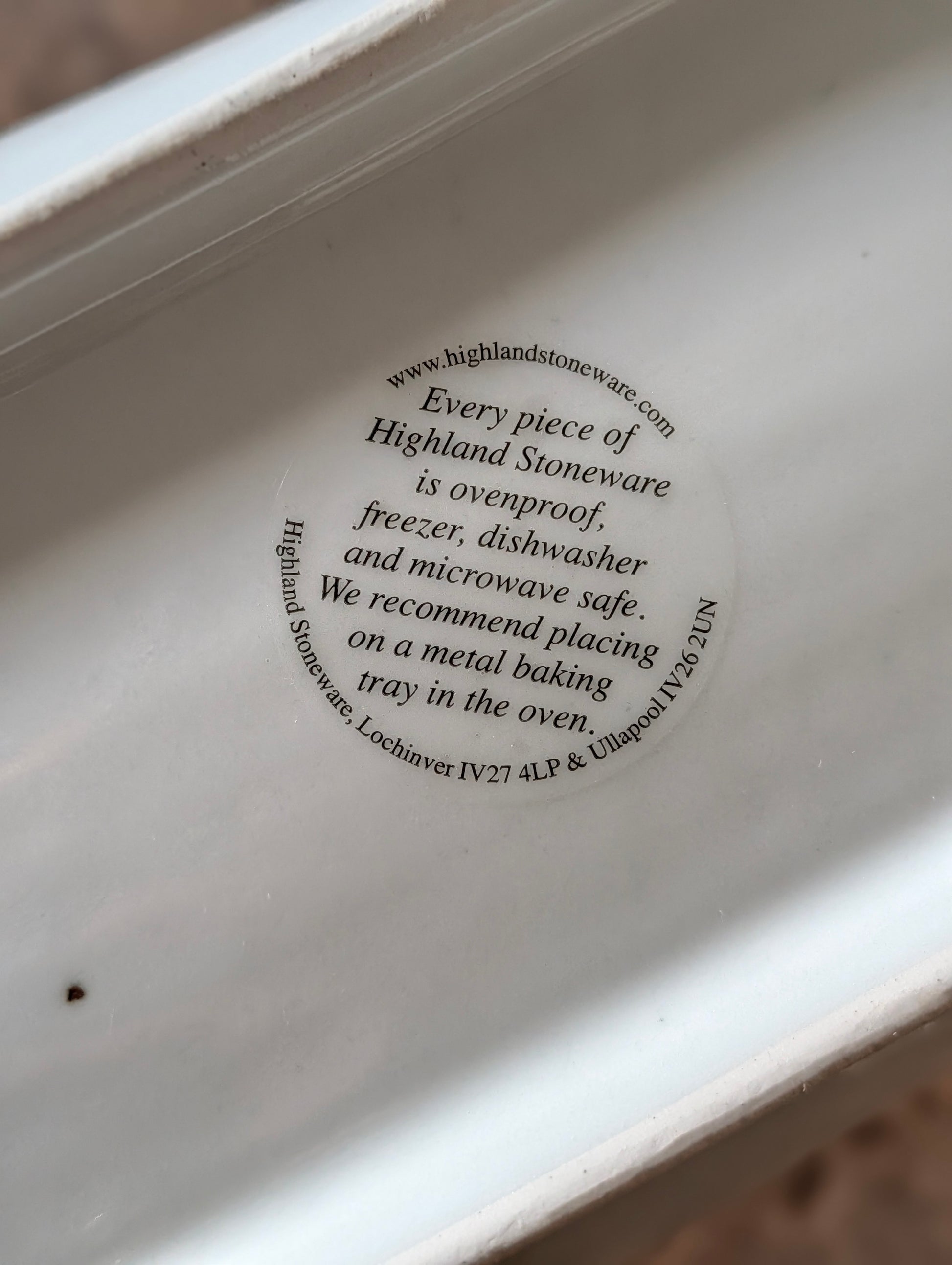 Pre-loved: in excellent condition. It is oven and freezer proof, dishwasher and microwave safe as well as being extremely resistant to chipping.