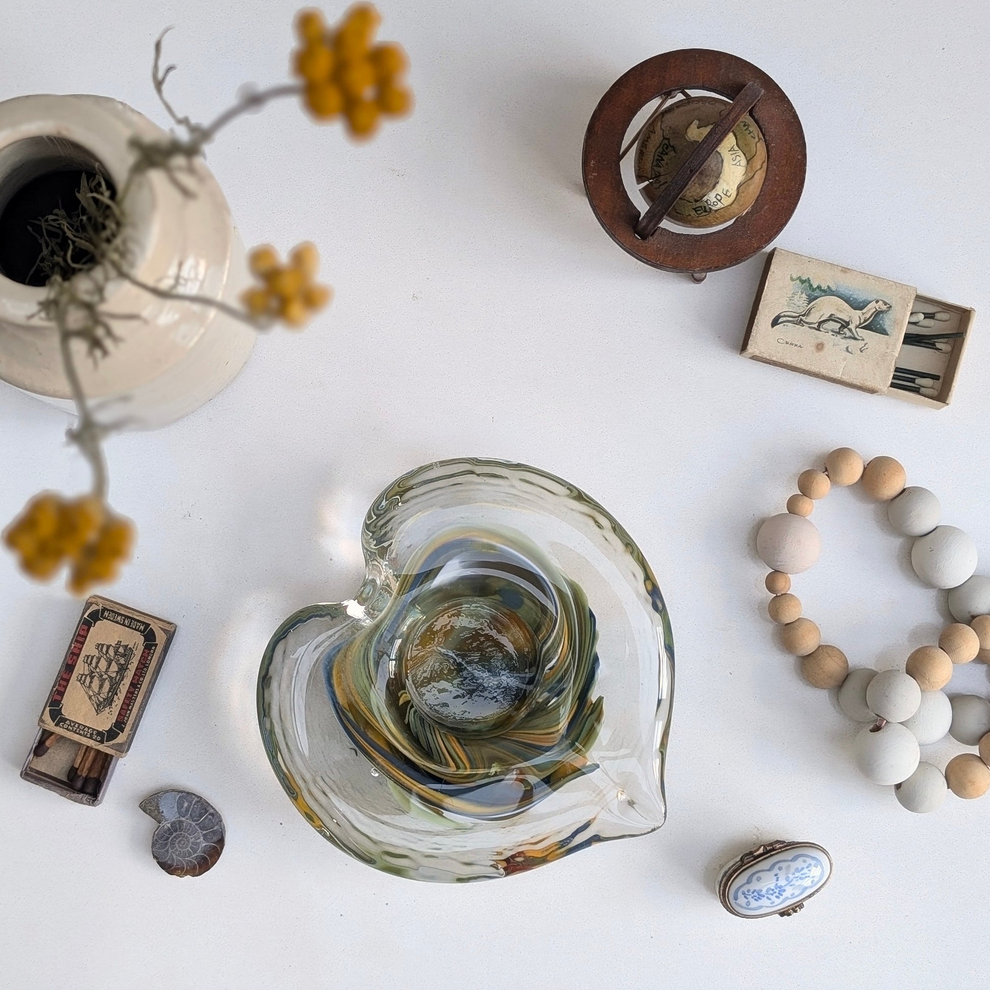This handcrafted Mdina art glass tealight holder showcases swirls of vibrant colours, characteristic of the renowned Maltese glassmakers. A perfect accent piece to add a a colourful flair to your space.