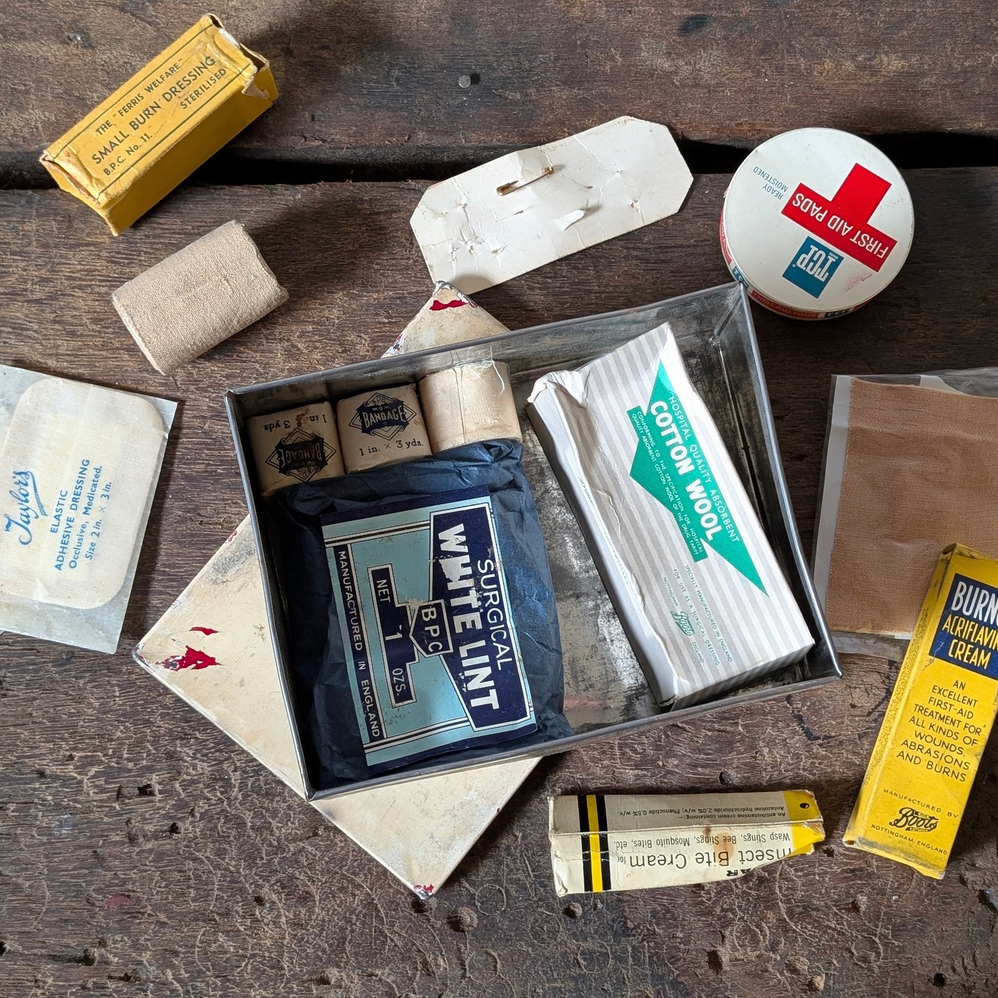 We are a sucker for vintage first aid boxes. We have more than one in our own home. There is something about the timeworn feel to them and the story of someone compiling this for their home. It has such a nostalgic smell of antiseptic - those moments of gentle hands nursing a graze with a plaster (after falling off your bike) come straight back to you.