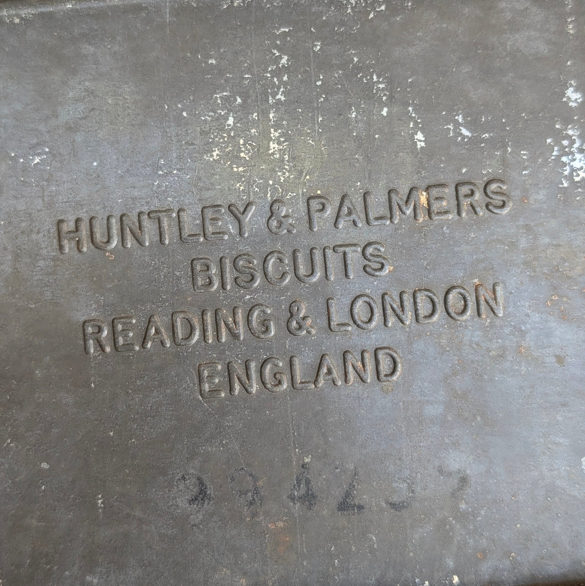 This is a pretty Huntley & Palmers vintage tin. The tin is in vintage pale green with small floral flowers and different scenes on the sides and lid.